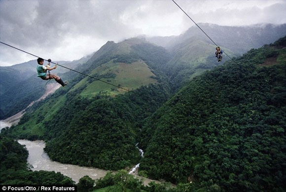 أطفالك إلى المدرسة سيكون عليهم التعلق بحبل على ارتفاع يفوق الـ400 متر والانطلاق